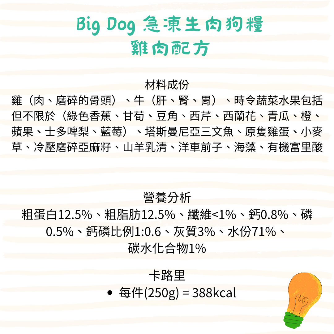 適口性高,特別推薦給初次轉吃生肉糧的狗狗。